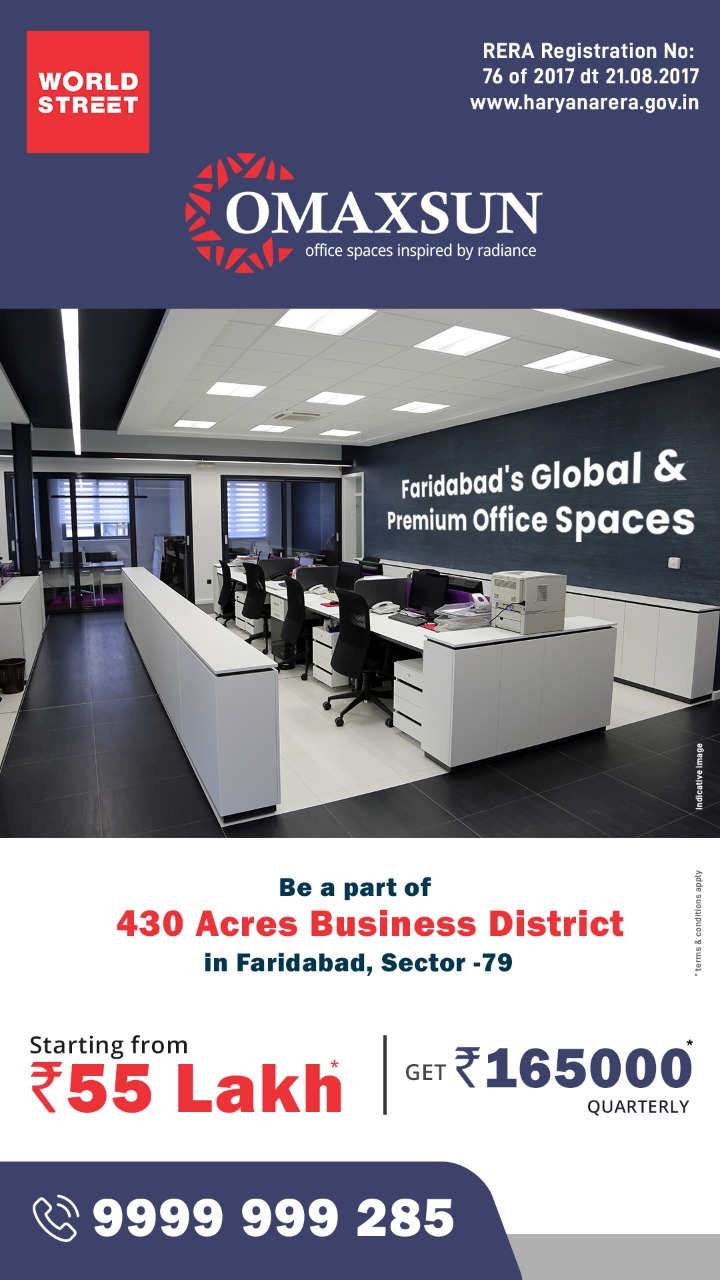 Faridabad is well connected to the capital city, Delhi. It is a well developed commercial hub close to Gurgaon too. Numerous home buyers are attracted to this city because of its beauty and the location being the suburbs of Haryana. NEW COMPANY BOOKING Launch OMAXE OFFICE SPACES SECTOR 79, WORLD STREET PRICE - 8500 per sq.ft. 12% annual return for 2 years Office Size- 650 sqft Booking amount- 7 Lakh cheque Limited inventories 140 units Location : OMAXE WORLD STREET, Ph.3, sector 79, Faridabad Booking on First come first serve For more info: